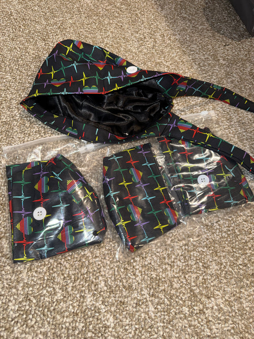 Black EKG Satin Lined Scrub Cap